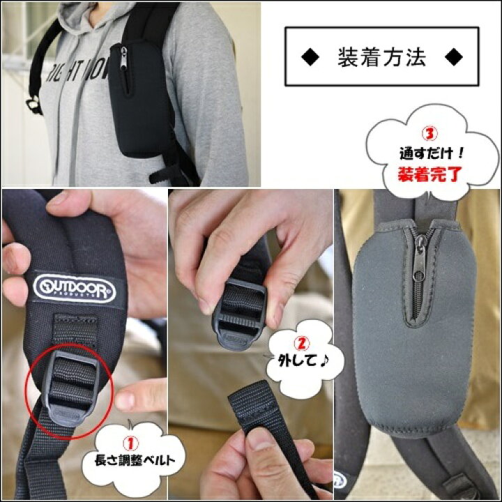 楽天市場 ネコポス便対応 選べる 4色 リュック肩ひも装着型 縦付ホルダー スマホケース Outdoor Products アウトドアプロダクツ リュックサック装着可能 対応機種 Iphone6 Galaxy リュックサック本体は別売りです ホルキン